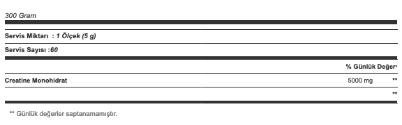Servis Miktarı: 1 Ölçek (5 Gr)